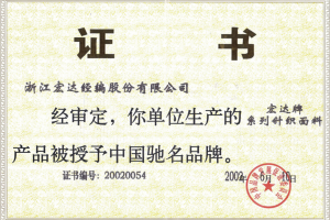 變更設(shè)立浙江宏達(dá)經(jīng)編股份有限公司;公司通過(guò)ISO14001認(rèn)證,被認(rèn)定為國(guó)家重點(diǎn)高新技術(shù)企業(yè);宏達(dá)牌經(jīng)編面料被認(rèn)定為浙江省名牌產(chǎn)品