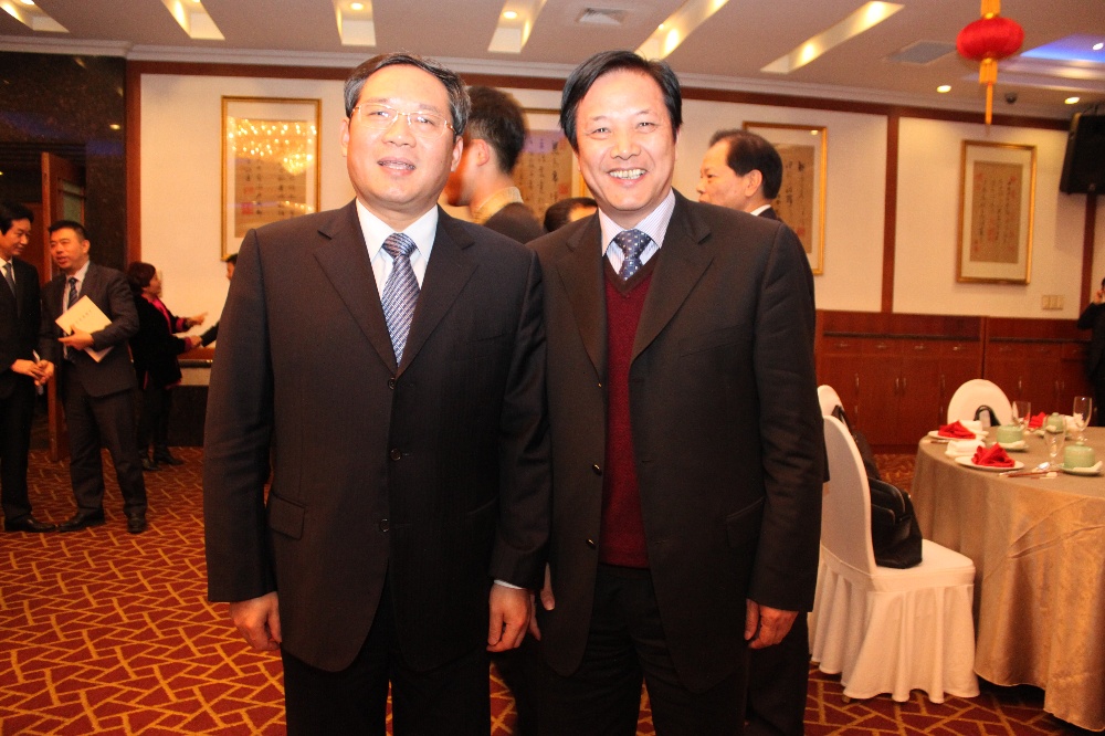 Li Qiang, governor of Zhejiang Province, took photos with Chairman Shen Guozhen when he met with representatives of entrepreneurs.