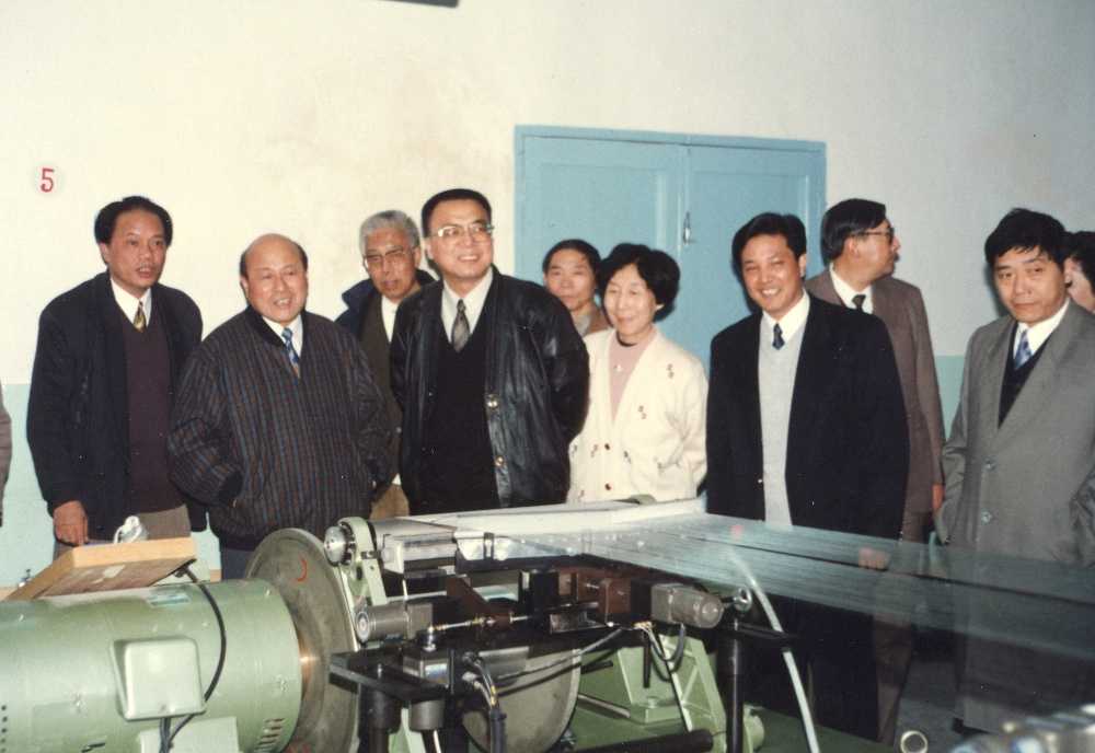 時(shí)任中國(guó)紡織工業(yè)協(xié)會(huì)副會(huì)長(zhǎng)許坤元與時(shí)任中共海寧市委書(shū)記馮水華、董事長(zhǎng)沈國(guó)甫在海寧