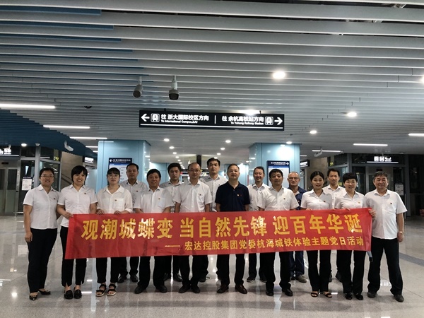 2021年6月19日,在“杭海城鐵”即將通車(chē)前夕,中共宏達(dá)控股集團(tuán)黨委委員許建舟帶隊(duì),公司支委以上黨員和優(yōu)秀共產(chǎn)黨員共20余人,開(kāi)展了以“觀潮城蝶變 當(dāng)潮城先鋒 迎百年華誕”為主題的“杭海城鐵”體驗(yàn)主題黨日活動(dòng)。