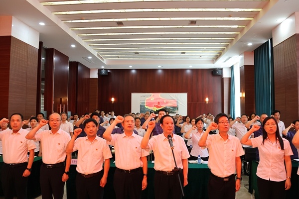 會上,全體黨員在沈國甫書記的領(lǐng)誓下,舉起右拳,面向黨旗莊嚴(yán)宣誓,重溫入黨誓詞;集團(tuán)黨委委員顧偉鋒同志宣讀了集團(tuán)黨委《關(guān)于開展“學(xué)規(guī)定、悟思想、爭先鋒”慶祝建黨104周年系列活動的通知》;集團(tuán)黨委副書記許建舟同志宣讀了集團(tuán)黨委《關(guān)于表彰優(yōu)秀共產(chǎn)黨員的決定》,表彰了過去一年涌現(xiàn)出的毛方飛等10名優(yōu)秀共產(chǎn)黨員;行政支部錢莉代表獲獎優(yōu)秀黨員發(fā)言。