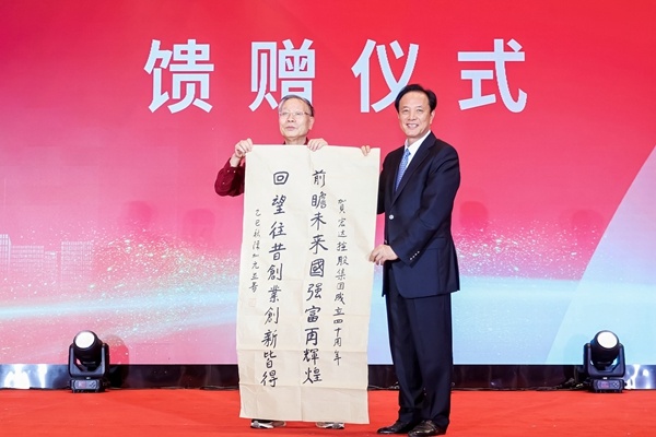 原紡織工業(yè)部副部長、國家紡織工業(yè)局局長,中國紡織工業(yè)聯(lián)合會原會長杜鈺洲;浙江省人民政府原黨組副書記、副省長,省政協(xié)原副主席,省慈善文化研究院院長陳加元還現(xiàn)場為“宏達”揮毫贈墨寶,以墨香致敬企業(yè)四十年征程。