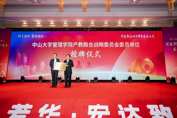活動現(xiàn)場同步推進產(chǎn)教融合新舉措:中山大學(xué)管理學(xué)院學(xué)生社會實踐基地正式揭牌,“宏達”以該校產(chǎn)教融合戰(zhàn)略委員會委員單位身份,為學(xué)子提供實踐平臺。
