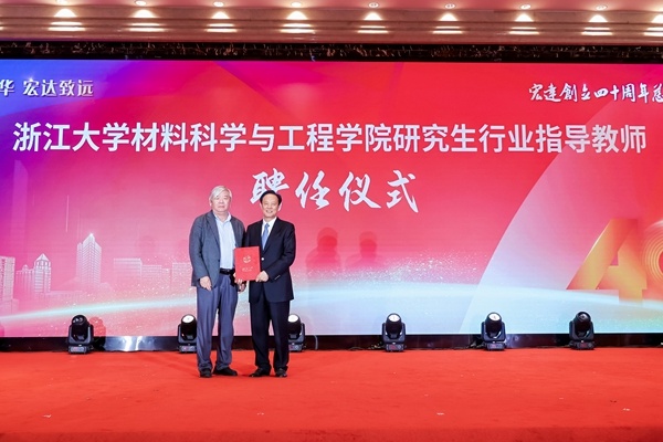 沈國甫董事長被聘任為浙江大學(xué)材料科學(xué)與工程學(xué)院研究生行業(yè)指導(dǎo)教師,以實業(yè)經(jīng)驗賦能人才培養(yǎng)。