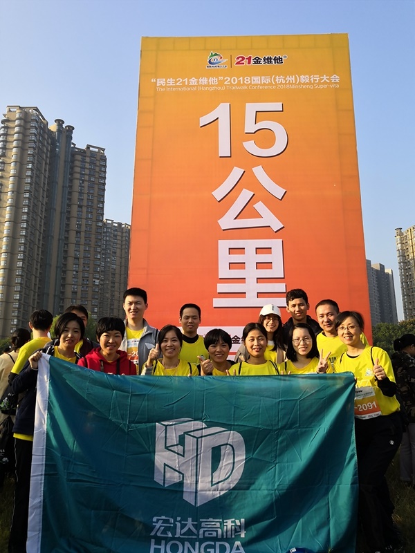 11月10日上,“民生21金維他”2018國際(杭州)毅行大會在杭州舉行,一萬五千名國內(nèi)外毅行者齊聚漁人碼頭生態(tài)公園,燃情開走。宏達高科13名員工組成的代表隊參加15公里組。