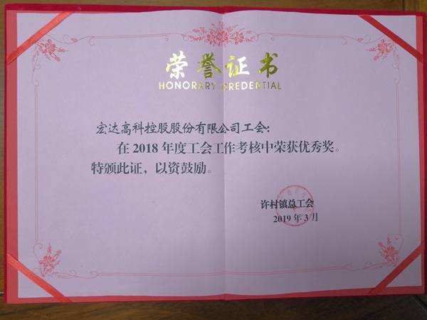 宏達(dá)高科工會(huì)被評(píng)為鎮(zhèn)2018年度工會(huì)工作先進(jìn)集體