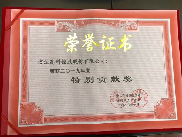 2020年1月22日下午,許村鎮(zhèn)召開2019年度總結(jié)表彰大會(huì)。鎮(zhèn)機(jī)關(guān)全體工作人員、村(社區(qū))兩委班子成員、億元以上企業(yè)、駐鎮(zhèn)單位負(fù)責(zé)人參加。宏達(dá)高科控股股份有限公司被評(píng)為年度工業(yè)畝產(chǎn)先進(jìn)單位、美麗廠區(qū)示范單位、特別貢獻(xiàn)獎(jiǎng)、黨建(主題教育)工作先進(jìn)單位。