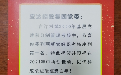 宏達控股集團黨委在許村鎮2020年度基層黨建積分制管理考核中委列兩新組織..