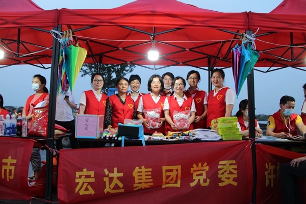 2020年6月1日傍晚,海寧市許村鎮許村社區聯合共建單位黨組織、愛心企業、社會組織等多方力量,在許村龍渡湖廣場開展了一場以“關愛生命、無償獻血、愛心接力”為主題的公益集市活動,宏達控股集團黨委作為共建單位,派出了10余名黨員參與活動。