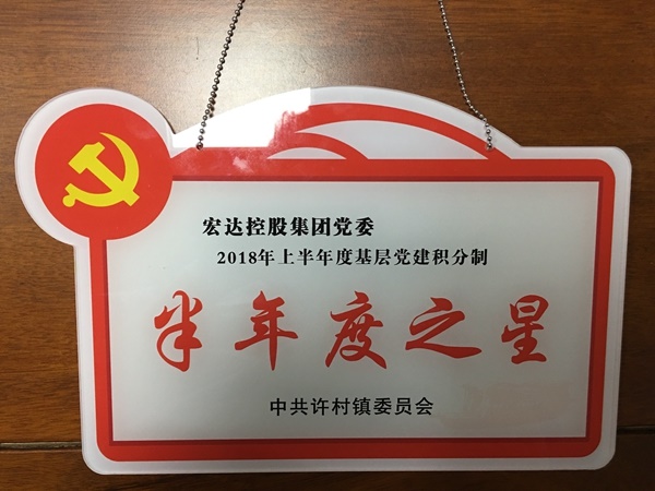 近日,海寧市許村鎮黨委召開2018年半年度黨建工作暨基層組織力再提升部署會議,會議通報了2018年許村鎮各基層黨組織第二季度及半年度基層黨建積分制考核結果,宏達控股集團黨委被評為“2018年上半年度基層黨建積分制半年度之星”。