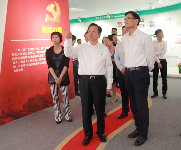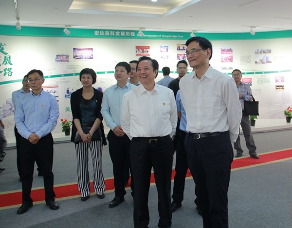 在“宏達(dá)高科”,熊建平一行在集團(tuán)董事長(zhǎng)沈國(guó)甫、集團(tuán)總經(jīng)理沈珺的陪同下參觀了企業(yè)展廳,并在公司會(huì)議室召開(kāi)了座談會(huì)。
