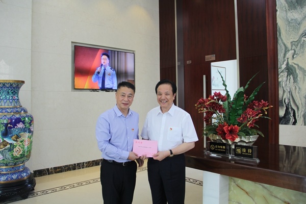 海寧市委書記朱建軍慰問浙江省黨代表沈國甫