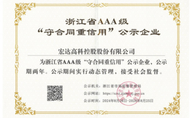 2024年8月,宏達高科通過浙江省AAA級“守合同重信用”企業復評。據悉..